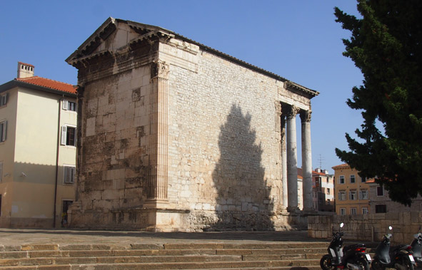 プーラのメインスクエアであるFORO広場。市民会館(The Town Hall)とアウグストゥス神殿 (Temple Of Augustus)が並ぶ丁度その裏手にあるのが Piazza Capitolinaです。神殿を裏から眺める事ができて中々面白いです。
