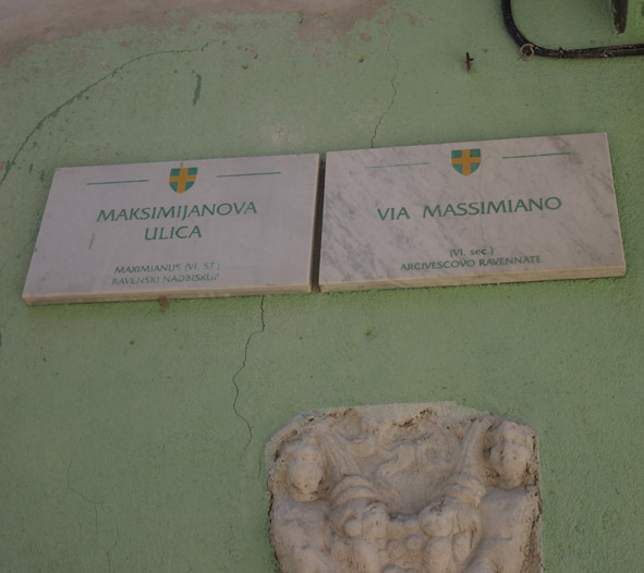 セルギ門(Sergijevaca)の前から続くわずかにくの字に曲がった通り。シティーウォールに沿って緑の沿道には花市場の屋台やお土産屋も並んで賑やかです。通りの向こうにはスーパーマーケットもあります。