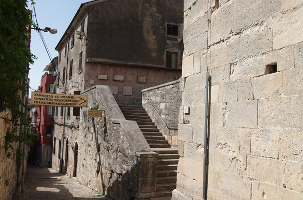 何もないけど美しいと言った言葉がとても似合うスヴェト マウラ通りです。綺麗に敷かれて時代を経て磨かれた石畳と圧迫感の無い両サイドの建物は歩いていても落ち着きます。夏の暑い日差しも適度に遮られていていて心地よいです。
