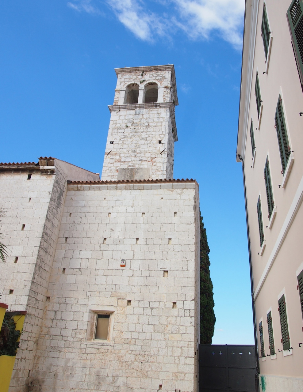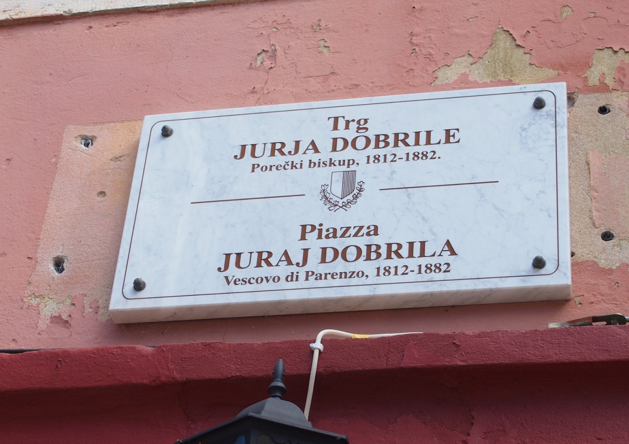 ポレチュ旧市街散策でEufrazijeva通りを歩いていてJuraj Dobrila Memorial Parkの先を歩いていた時に見つけました。このあたりの建物は薄いレンガのいうな物を細かく重ねた建物が多くイストラ特有の雰囲気が味わえます。
