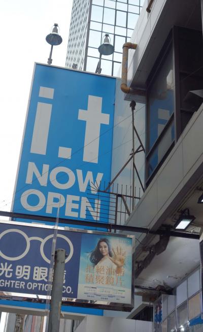i.t. と言えば香港のメジャーセレクトショップですね。大型のショッピングセンターに入っている事が多いのですがこの旺角荷李活商業中心(Hollywood Plaza)店は女人街からほど近く、エスカレーターで二階(表記は英国式で一階)に上る路面店のような感じです。