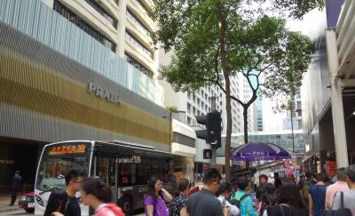 カントンロードはネイザンロードのような張り出し看板が無い代わりに両サイドがハイブランドのフラッグ路面店が大きなネオンサインでその存在を競っています。南の1881 ヘリテージ、レーンクロフォードなどショッピングスポットも多くブランド好きにはたまらないエリアです。
