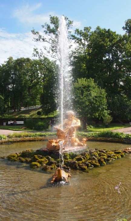 ぺテルコフ夏の宮殿の上の公園にあるとても広い池を備えた噴水が樫の噴水(Fountain of oak)です。下の公園の噴水たちとはうって変わって控えめな水流で派手さはありません。上の公園にはあまり高い木などがないので十分目立ちます。