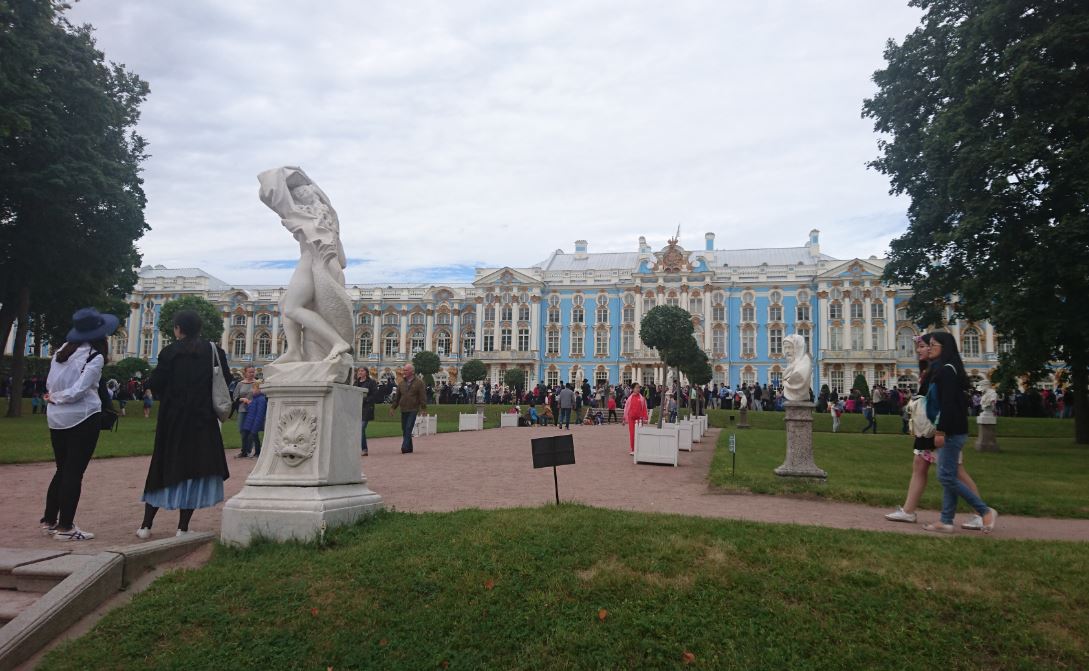 エカテリーナ宮殿(Catherine Palace)とこのぺテルコフ夏の宮殿を一日で回る日本から予約した現地ツアーで参加しました。色々悩みましたが効率を考えると結果的に正解でした。個人ツアー・団体ツアー・個人の順で入場の優先になっているみたいでぺテルコフ夏の宮殿をひと通り終えた時にも個人観賞の列は異常に伸びてました。