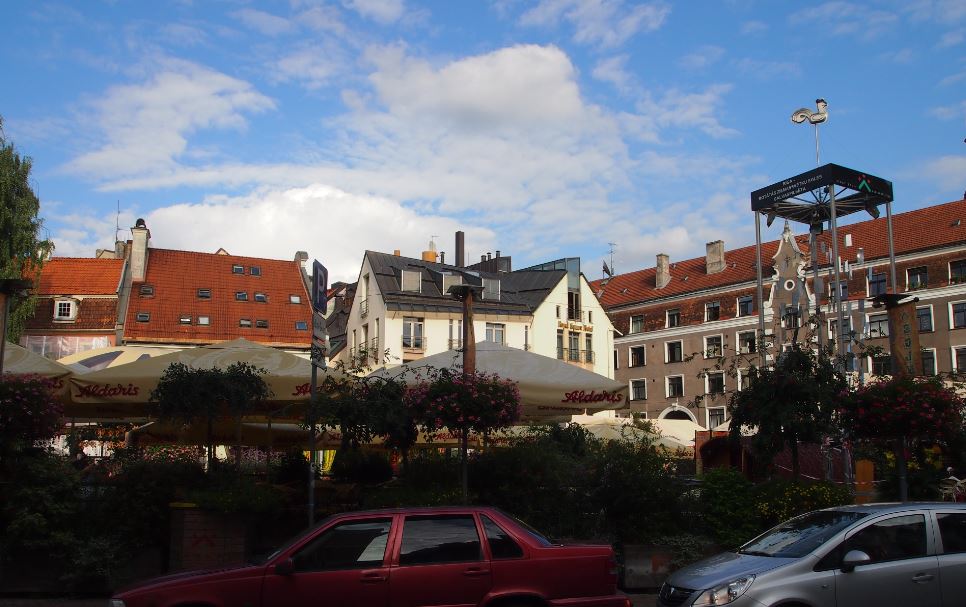 聖ペテロ教会の向いの広場はリガ旧市街屈指のレストランスペース