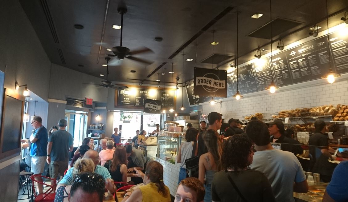 ニューヨークミッドタウンの西側、レキシントン通りに朝から賑わうベーグル屋さんがあります。オフィスの出勤前の腹ごしらえで店舗で食べる人とテイクアウトが半々ぐらいです。カウンターで注文する際は15人前後並んでいますが結構回転が速いです。