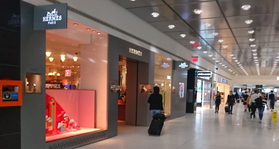 ケネディ国際空港 ターミナル1は日系航空会社が発着するターミナルですがあまり広くありません。そのターミナル1の中で最もハイブランドがエルメス(Hermes JFK International Airport)です。最近できたDFSではなく独立店舗ですがあまり大きくありませんが婦人の品揃えは豊富でした。