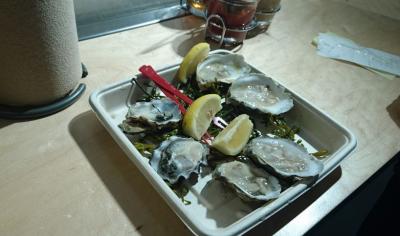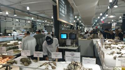 古い工場をリノベーションしたショッピングモールのチェルシーマーケット。その奥にあるフィッシュマーケットをイメージしたエリアにあるのがカル & ピストル オイスターバー (Cull & Pistol Oyster Bar )です。オイスターは1ピースから選べて色々な種類をちょっとづつ選べます。カウンターにケチャップ・レモンがあり立ち食いもできます。