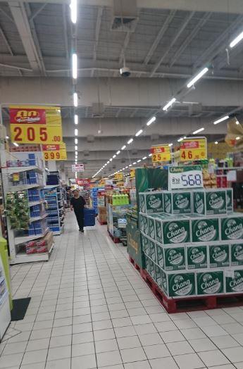 バンコクのスーパーマーケットビックC は郊外にある店舗が品揃えが多く、地元の食品などが多くあります。日本のスーパーマーケットと違って店舗によって同じ物でも価格がかなり違います。ラチャダピセーク通りのこの店舗はまとめ買い用の品も多く大きなカートで買い物をする地元の方が沢山いました。