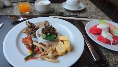 日本の企業の工場やタイとの合弁企業の事務所がある為に日本人の宿泊率が多い為か、朝食会場は驚くほど日本食のメニューが多く朝食の4割は日本食メニューでした。部屋はマンション風で長期滞在用に広いキッチンや大きな冷蔵庫があり、調理器具も常備されています。