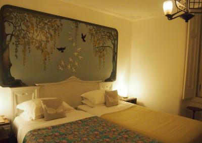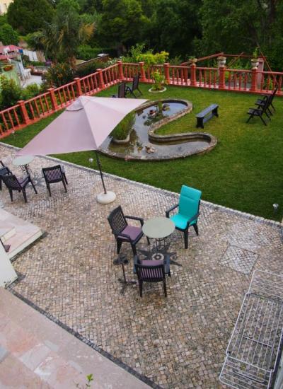 シントラ観光の際に利用しました。シャレソーダド(Chalet Saudade)はペパーミントグリーンと白の外壁がロマンチックなブティックホテルです。一般の邸宅みたいな造りなので門や玄関をインターホンで連絡して開けてもらわなければならないのが面倒です。部屋は一つ一つ丁度品が変わっていて楽しいです。階下に更に可愛い庭園があります。朝食は外のレストランで食べます。