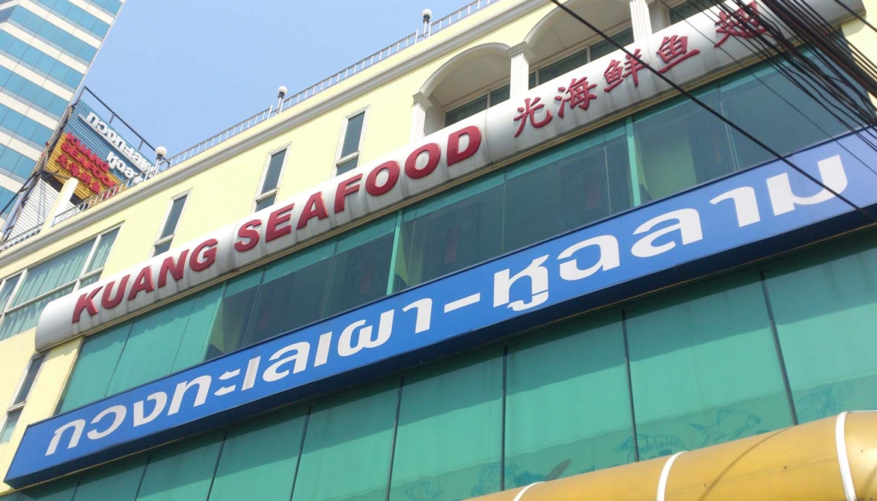 最近再開発が進み注目のラチャダピセーク(Ratchadaphisek)通り沿いにあるシーフードレストランです。近くにプーパッポンカレーの元祖ソンブーンレストランがありますが迷わずここへ行きましょう。味も価格もこちらがお勧めです。テーブルなどはちょっと油っぽいですが気にならない程度ですよ。最寄りの駅は地下鉄Thailand Cultural Centre駅になります。