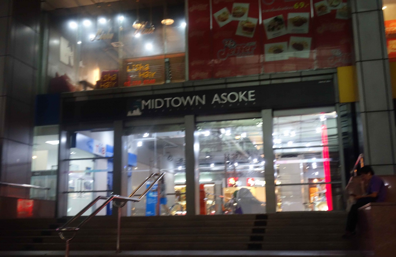 アソーク通り(Asoke-Montri Rd)新しく出来た上階はオフィスになっている複合施設ビルがミッドタウンアソークです。BTSアソーク駅と地下鉄ペッブリー(Pechaburi)駅の中間にあるのでどちらの駅からも7~8分程度ですね。テナントすきやが入っていますが特に目ぼしいものはありません。観光には向きません。