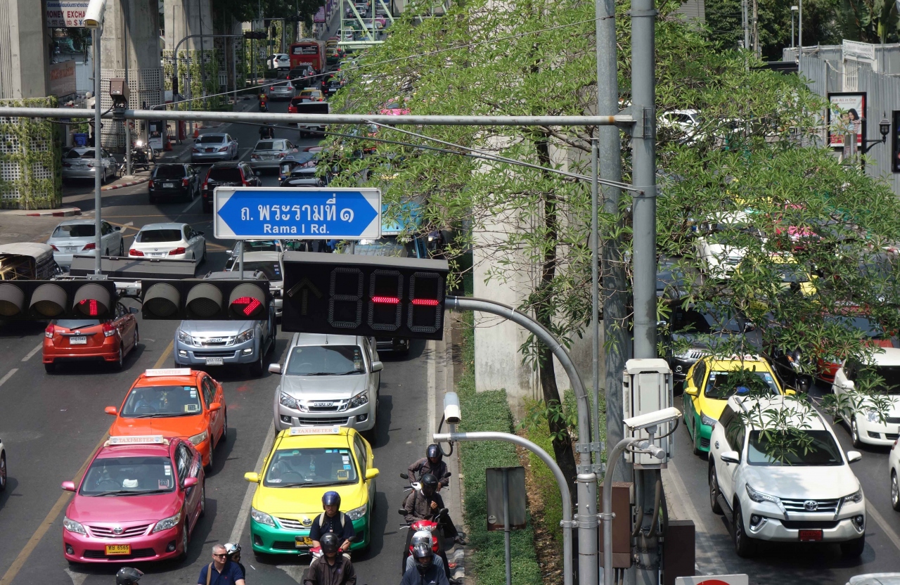 BTSと連絡歩道橋から見る通りの景色はバンコクの都会の風景です。