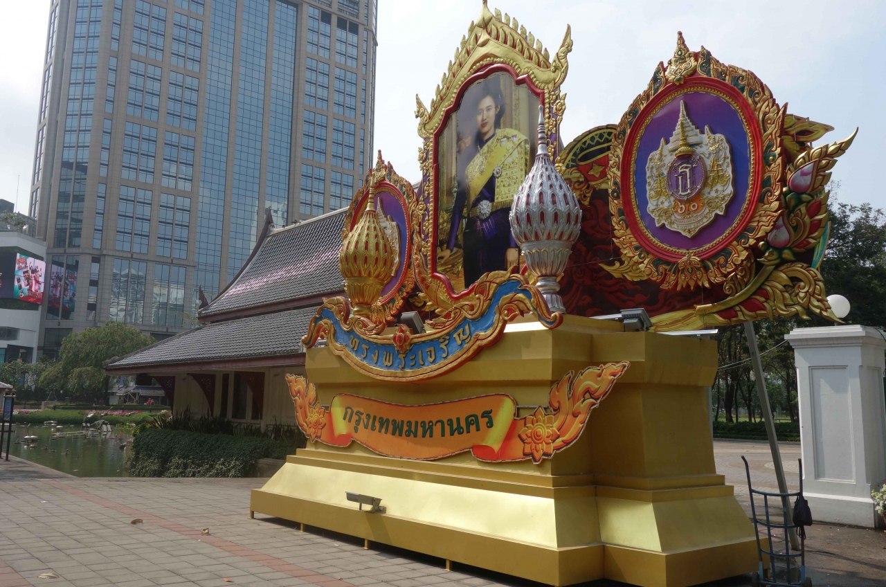 悲しい出来事があったエラワン(ERAWAN)廟。相変わらずお参りの方でとても賑わっています。表からは分かりませんが裏側のテントに舞台の裏側には軍隊らしき一隊が待機していました。お祈りの邪魔をしたくない方はスカイウォークから眺めるのも良いですよ。