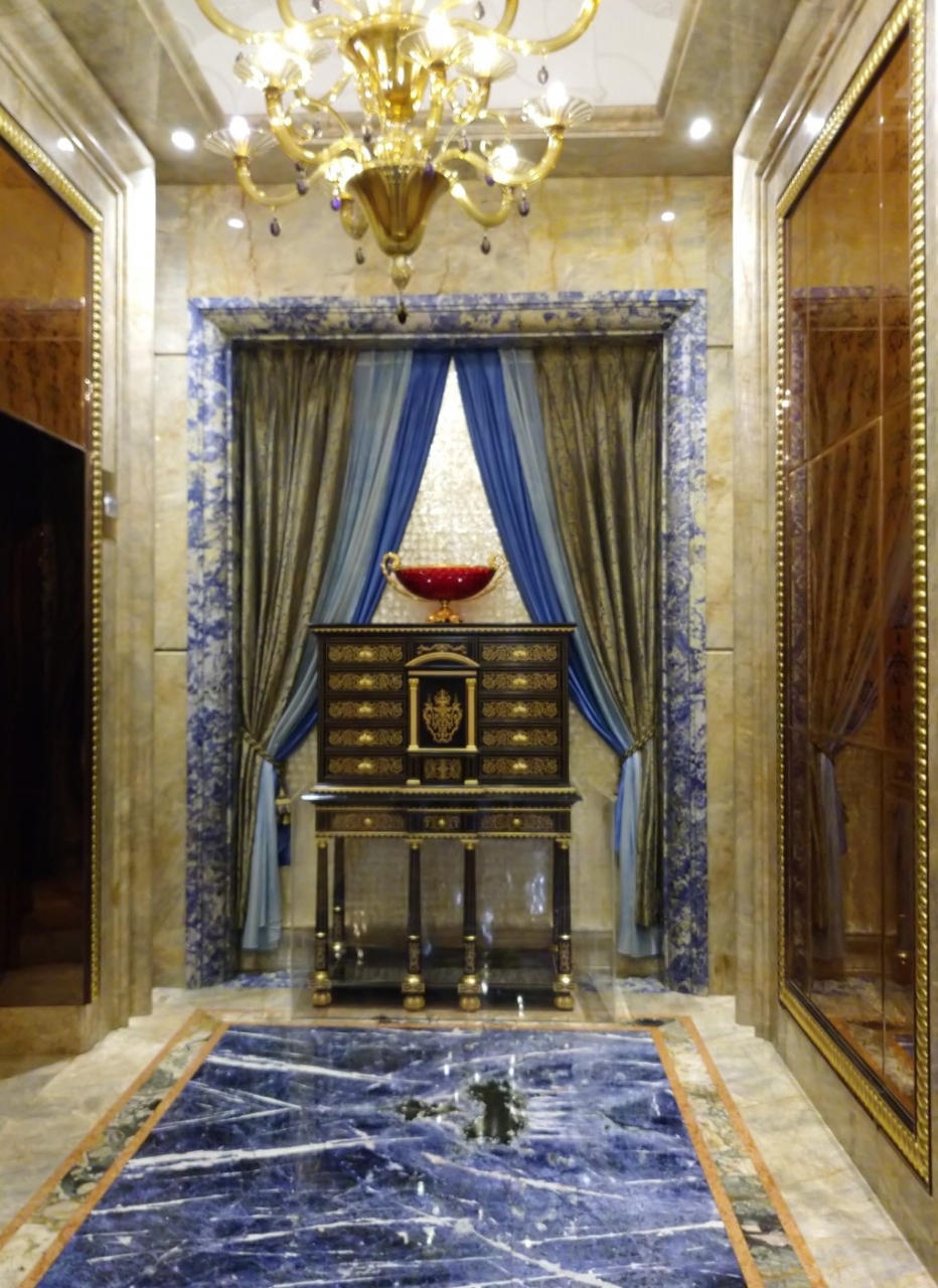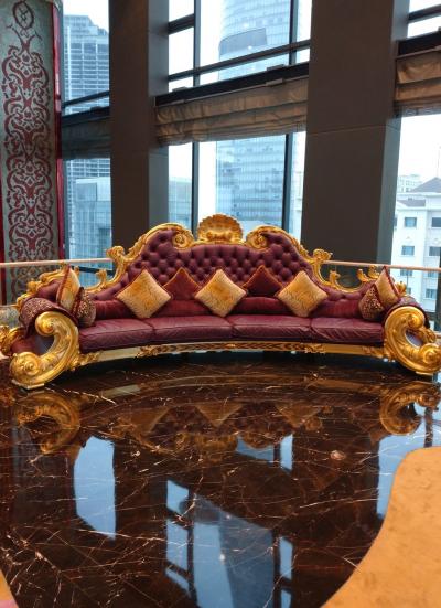 フエ通りとドンコイ通りの間のベストポジションに建つ五つ星ホテルがザ レベリー サイゴン (The Reverie Saigon)です。荘厳ながら天井の高いロビーはシンプルながら落ち着いたインテリア。エレベーターも超豪華なつくりです。カフェやレストランにあるインテリアは逸品そろいでした。