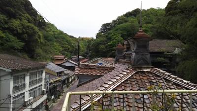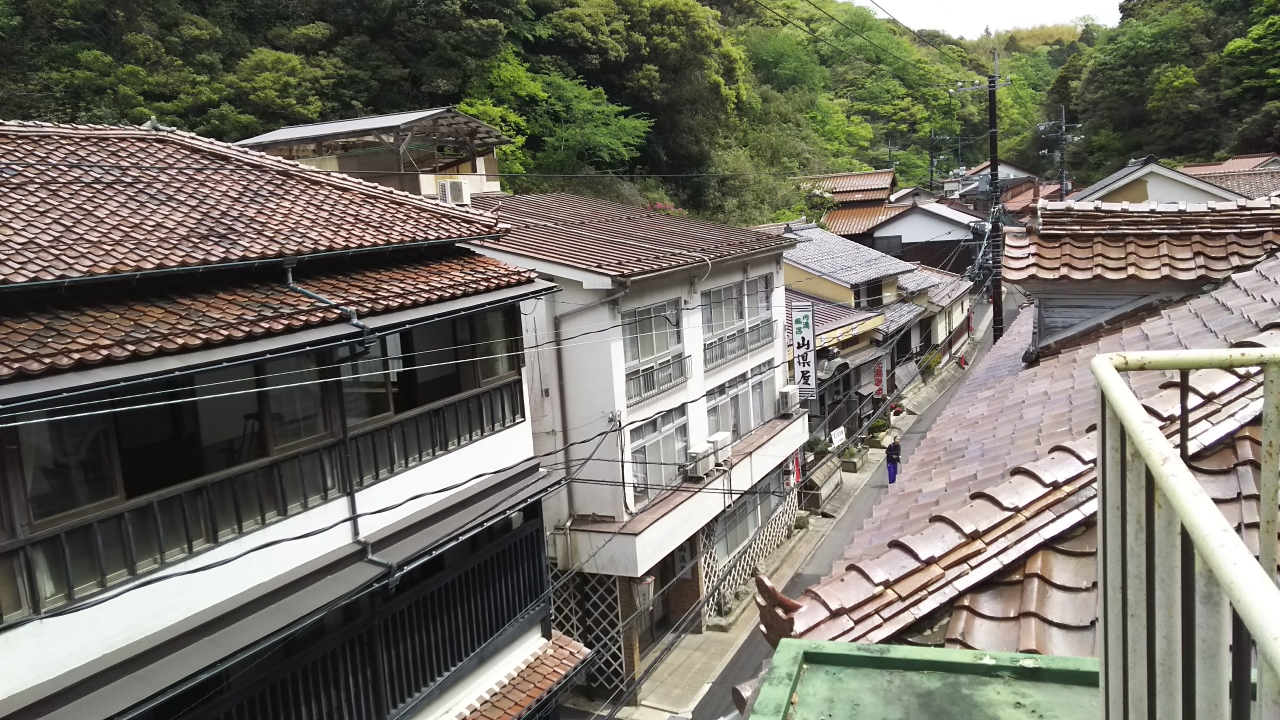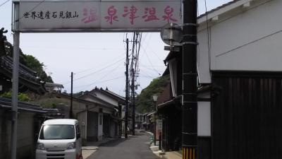 国道9号線を出雲市から西進し、太田市を過ぎて20㎞ほど走ったところを、北にそれて温泉津温泉を訪れました。温泉津温泉に初めて来たのは、50年ほど前で、その時は旅館に泊まって、朝早く温泉津港からイカ釣りにでかけたことを思い出します。今回は温泉津港のそばにある「ゆうゆう館内」の観光案内所に最初に寄ってマップを頂きました。ここの無料駐車場に車を停め、温泉街に入りました。最初、左手の山に龍御前神社が見て、古い街並みを歩いていきました。一人歩きにはムード満点です。