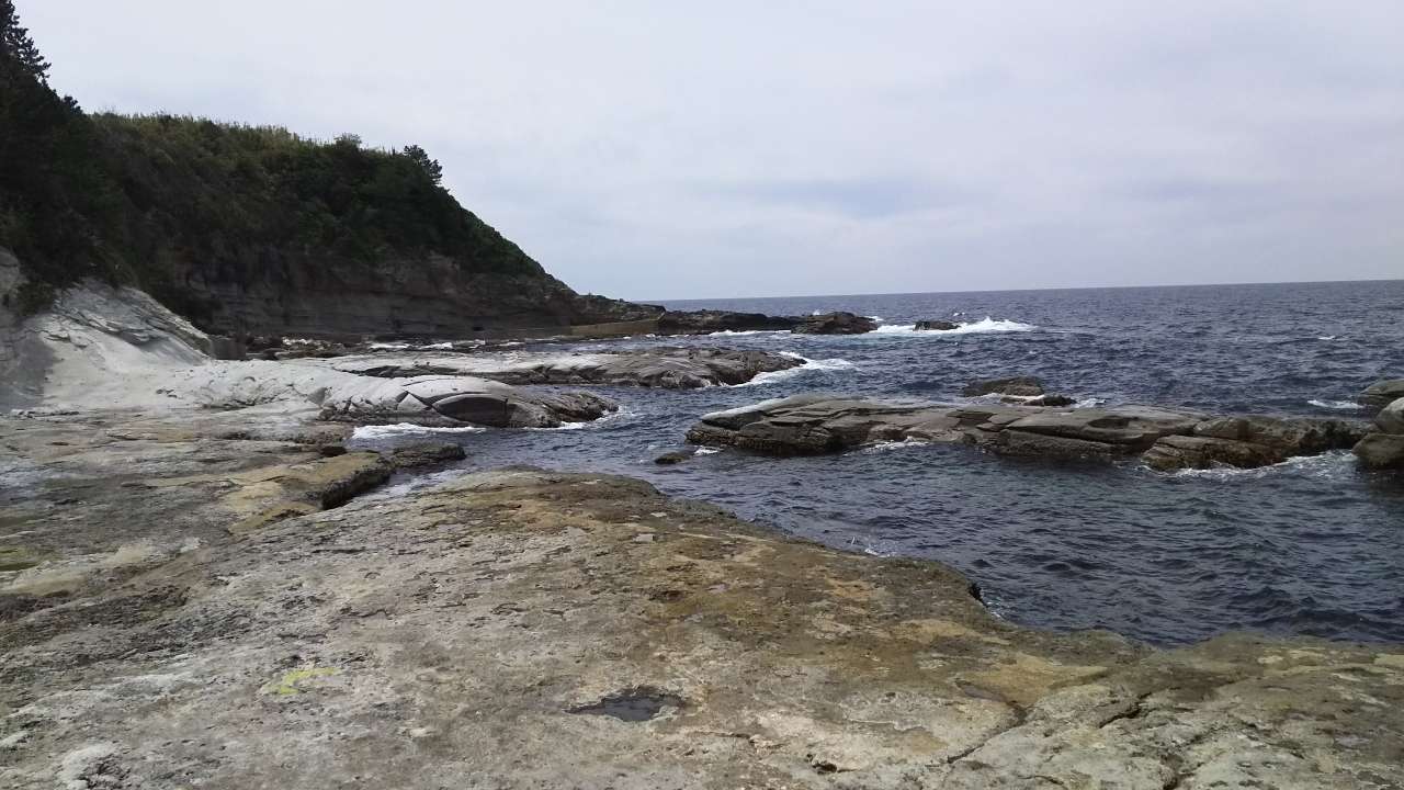 温泉津温泉の薬師湯でゆっくりした後、「ゆうゆう館」の前の道を車で1㎞あまり北上して車を停め、沖泊付近の温泉津海岸を歩きました。複雑な地形の侵食海岸で、荒波が砕ける豪快な景観でした。訪れている人は数人でしたが、海岸近くの岩場にパイプ椅子を置いて、春の暖かい風を受けながら、ゆっくりとした時間を楽しんでいる人もいました。近くにキャンプ場もあります。東部には神秘的な岩窟があるそうで、次回は是非訪れたいと思います。