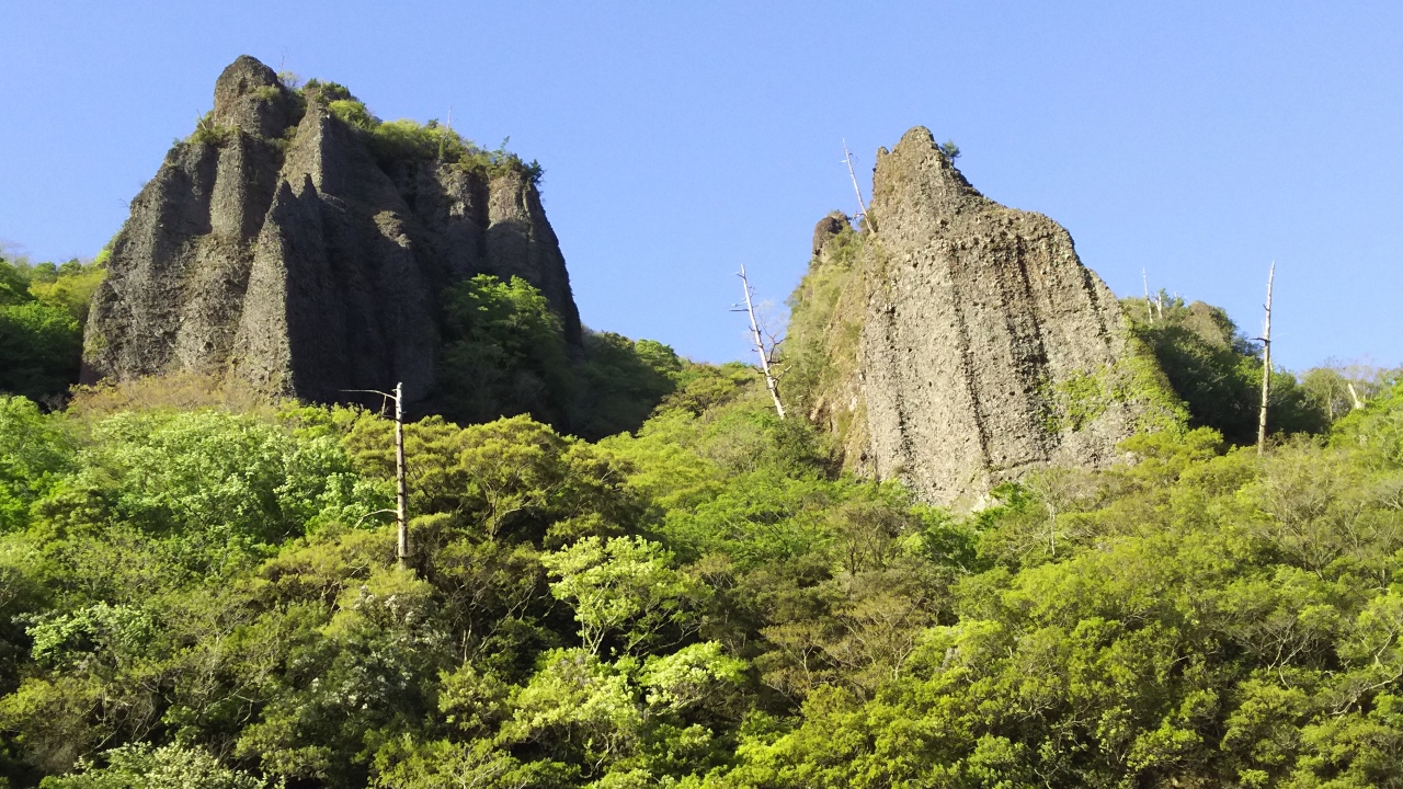- 岩場を歩くときは注意が必要。