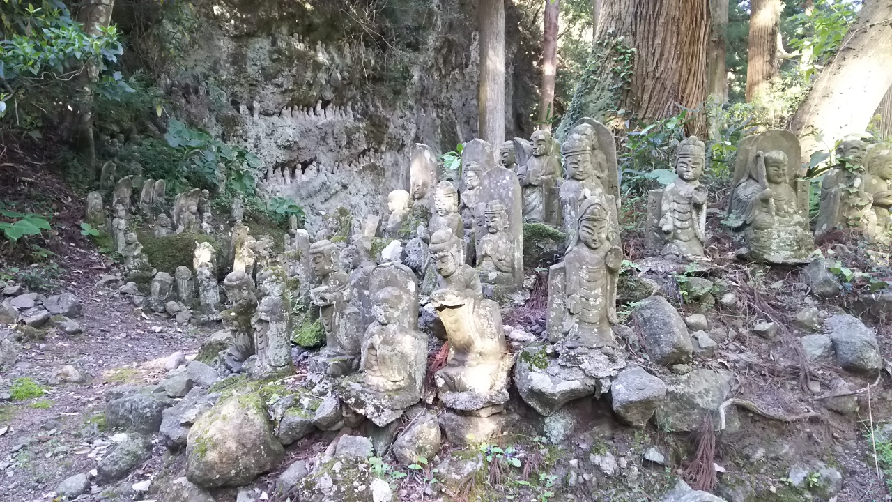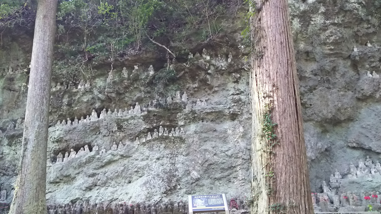 - 奇岩がそびえ、無数の石仏がある。
