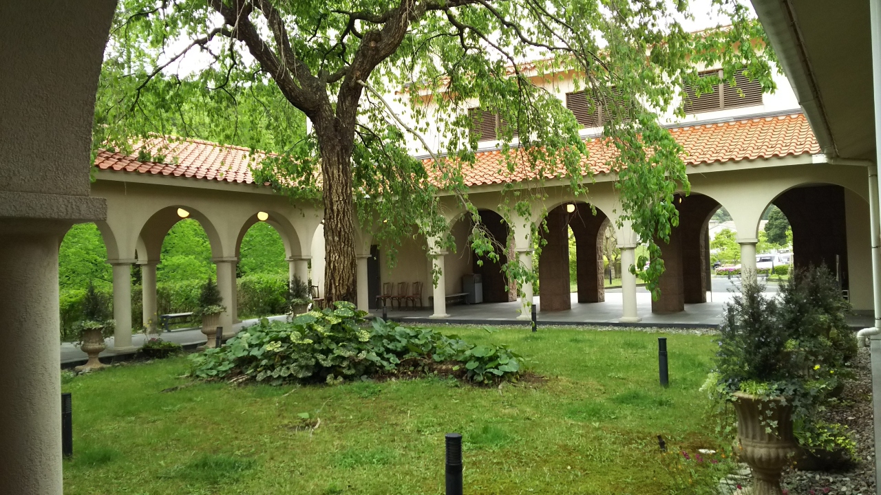浜田市三隅町出身の日本画家・石本正の作品を収蔵・展示する美術館です。国道9号線の浜田市と益田市のほぼ中間点を日本海側に1㎞あまり走った高台、三隅中央公園内にある緑に囲まれた小さな美術館です。館内には婦人画が多く展示され、石本正のアトリエが再現されています。美術館入口の右にはイタリアの教会をイメージしてつくられた中庭があります。