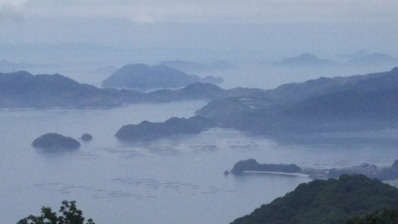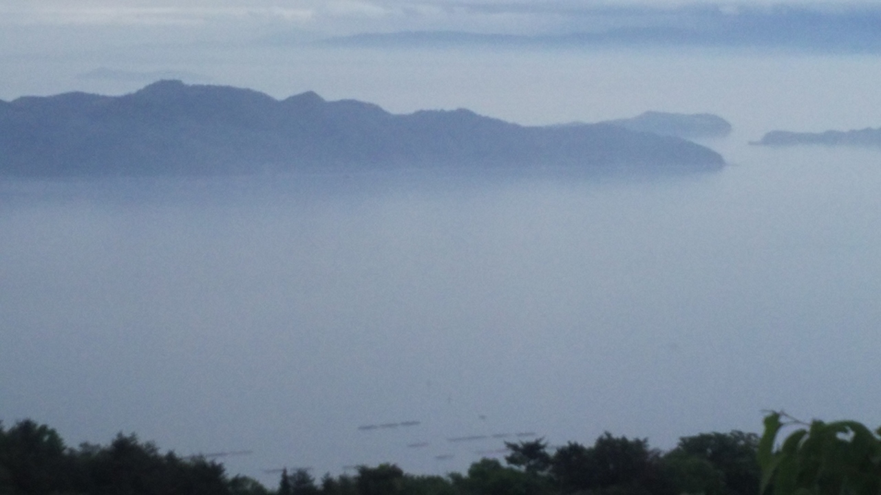 - 瀬戸内海、四国石鎚連峰が見える。