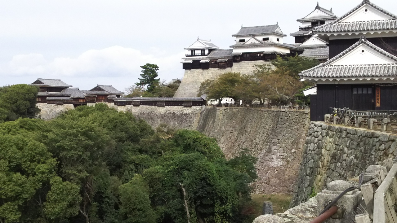 松山市の中心部大街道の電停から500mほど北北東に歩くと、ロープウェイ乗場がありここからロープウェイかリフトに乗って山頂駅まで数分です。ここから10分ほど歩くと、本丸広場と天守があります。高低差もあまりなく、歩道も整備されているので帰りは歩くのがお薦めです。途中にある東雲神社に参拝するのも良いと思います。いつも、天守閣の手前にある本丸広場のベンチに座って、松山の町を見ながらゆっくりとした時を過ごしています。帰りは二之丸史跡庭園まで歩いて下ることもありますが、ロープウェイ沿いの道より少し狭く、歩きにくいです。