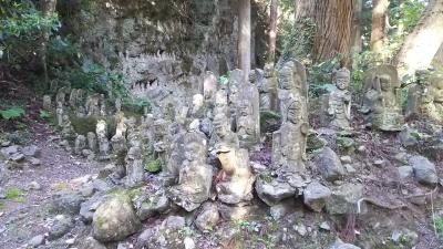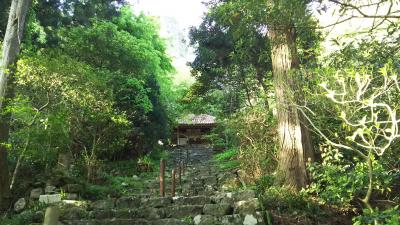 野呂山ビジターセンターから南に100mあまり下り、左折して約400mのところに弘法寺があります。弘法大師空海が19歳と49歳のときの2度にわたり、岩屋で修行したと言われています。本堂の西には弘法大師像や阿弥陀堂、愛宕神社の祠などがあります。野呂山を訪れたときは、かぶと岩展望台から森の中の道と車道を歩いて、弘法寺を参拝しています。この度は、弘法寺の鐘楼の横から、伊音寺八十八箇所、仁王門を通ってJR安浦方面に下山しました。豪雨災害で道がかなり荒れており、初めての方で一人で登る場合は注意が必要です。