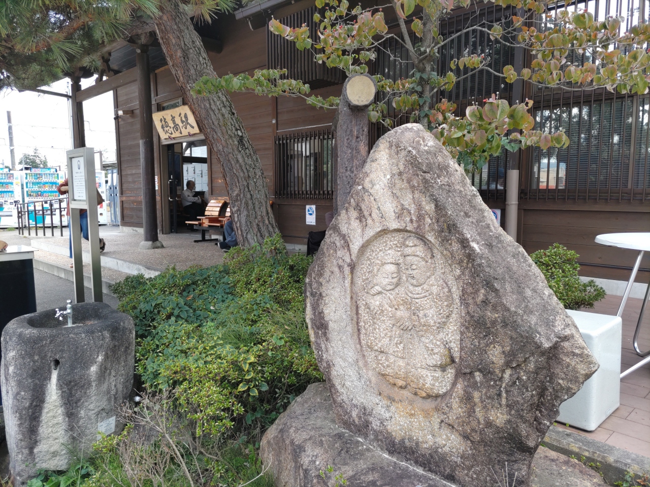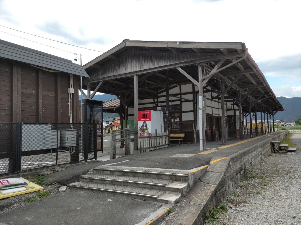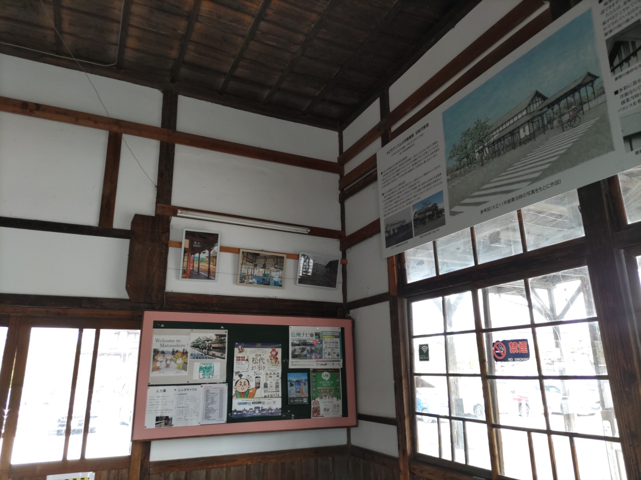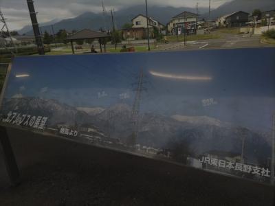 松代駅は、平成24(2012)年に廃線となった長野電鉄屋代線の駅であり、駅舎やプラットフォームが今も残されている。駅舎に入ると、多くの人が利用していた当時の懐かしい写真や資料が展示されている。駅舎の前には、はるか昔の小学校時代によく歌った「汽車ポッポ」の石の歌碑が建てられていた。この歌の作曲者は草川信で、父親は松代藩士で銀行員となった草川一成という人だそうだ。なお、駅舎およびその前のベンチは、バスの待合所等として利用されいる。