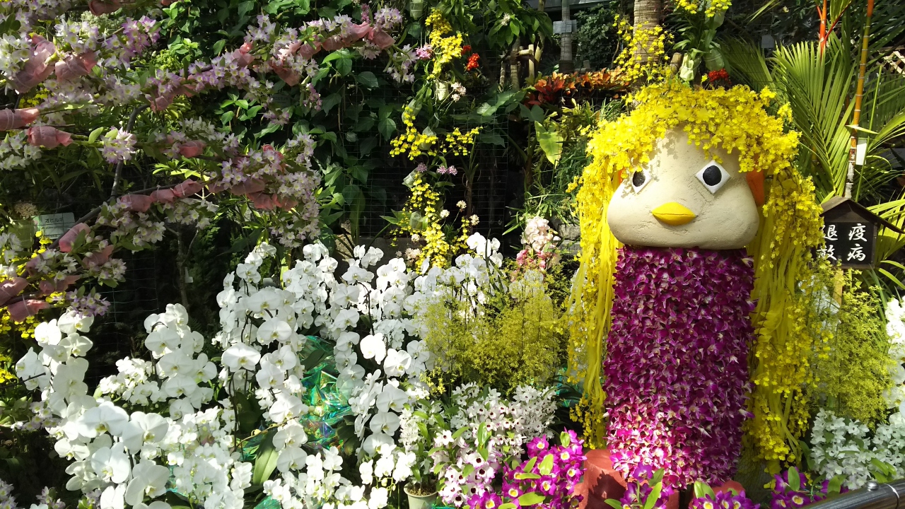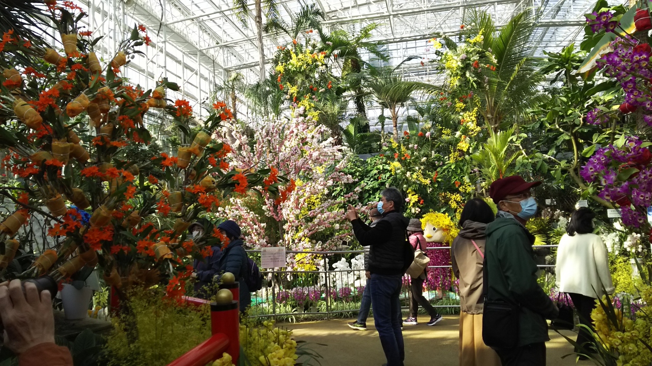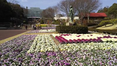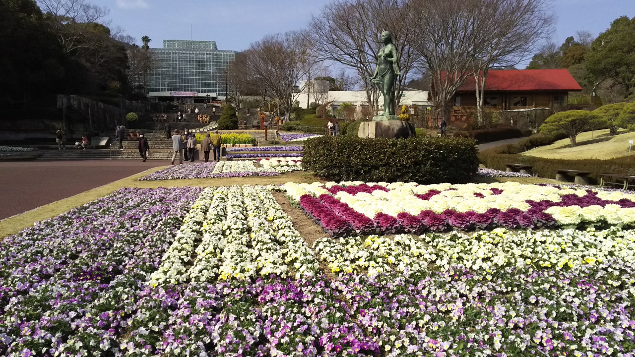 広島市植物公園は、広島市西部の瀬戸内海を一望する高台にある広い植物園です。大花壇や大温室、日本庭園などがあり、世界中の多くの植物が栽培され、一年を通して花を楽しむことができます。芝生の広場やレストランもあり、ゆっくりとくつろぐこともできます。立体駐車場に車を停めて、数分歩いて正門から園内に入ると、大花壇があり、その奥に大温室が見えます。入園料は65歳以上でシニア割引がありました。
