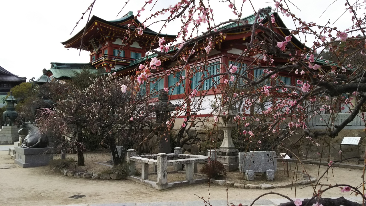 太宰府天満宮、北野天満宮と共に日本三天神に称せられています。住居のある広島に比較的近いこともあって、毎年合格祈願に訪れています。ご利益あってお礼参りにもたびたび来ています。駐車場は表参道の「うめてらす」の前にもありますが、満車のことが多いので、天満宮の東の道を登って裏側の広い駐車場に置いています(裏口入学ではありません?)。裏には梅園があります。本殿を参拝した後に、西にある春風楼の舞台に上がると眼下に防府の街が見えます。