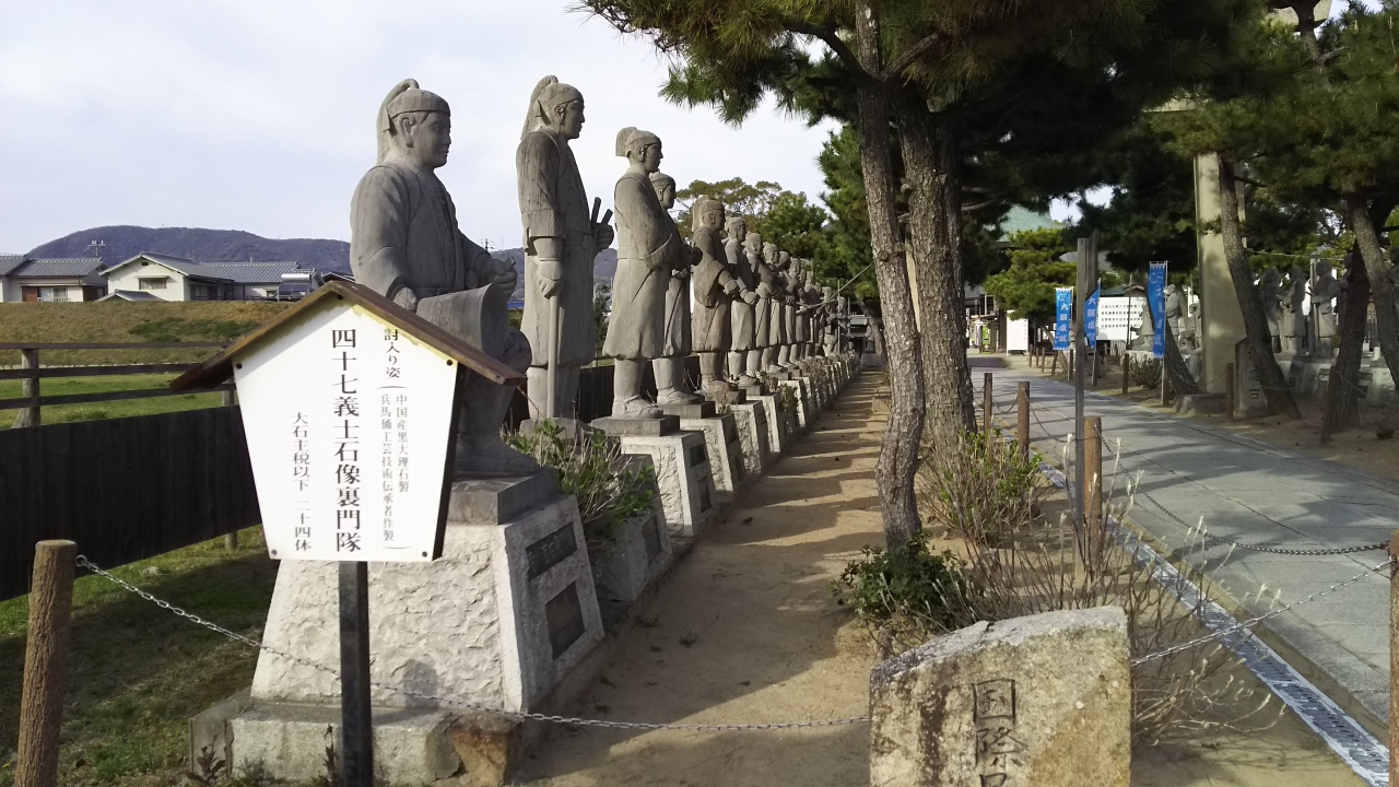 赤穂義士を祀る神社で、浅野家三代の城主や、断絶後の森家の城主なども祀ってあります。苦労を重ねて殿様の仇をうったということで、「大願成就」「心願成就」のご利益があるそうです。資料館や義士宝物殿、義士木造奉安殿(義士などの木造彫刻49体を展示)、大石内蔵助邸庭園を併置しています。これらの施設は有料ですが、見る価値は十分にあると思います。なお、義士像は参道横にも並んでいます。