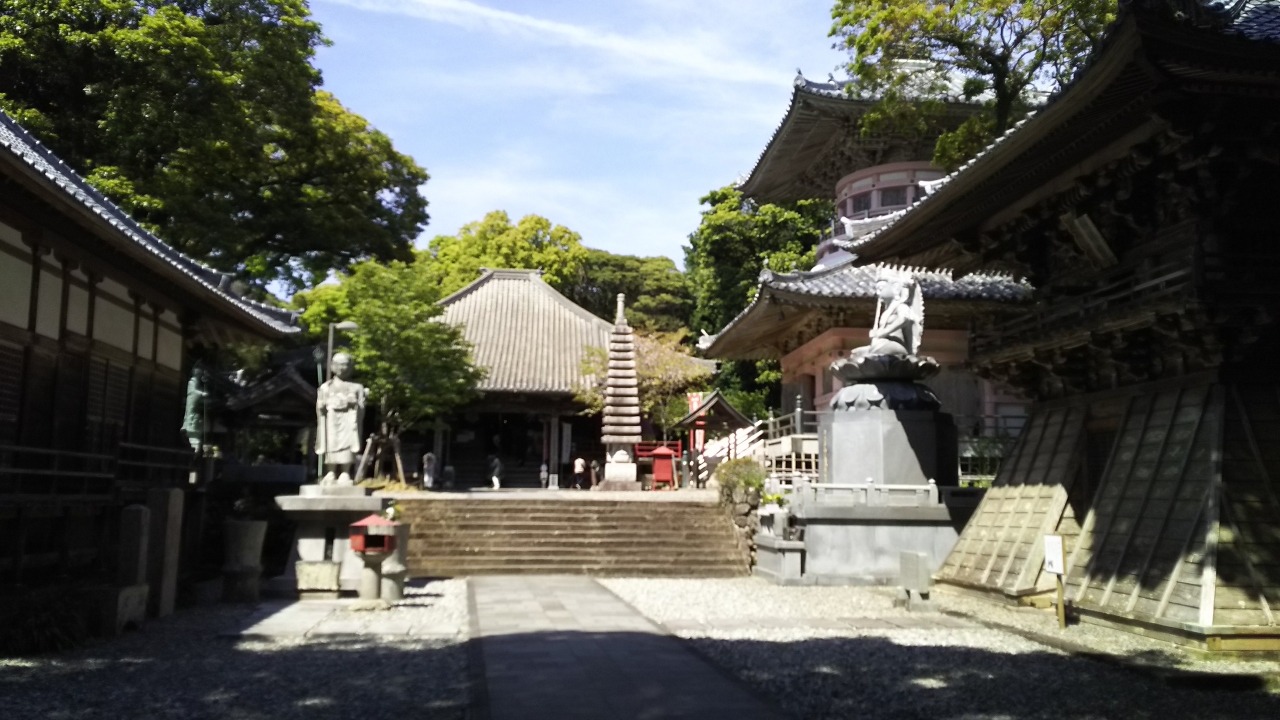 高知から国道55号線を南下すると、室戸岬の手前約1㎞、左手の海岸段丘に急斜面のつづら折りの道が登っています。これは室戸スカイラインで、登り切ったところに最御崎寺があります。真言宗豊山派の寺院で、本尊は虚空蔵菩薩、四国八十八箇所霊場の第二十四番札所です。駐車場から数分歩いて本堂を参拝して、寺の南にある室戸岬灯台に行こうと思いましたが、進入禁止になっていました。参拝後、スカイラインを北上し、展望台を経由して室戸市中心部に下りました。