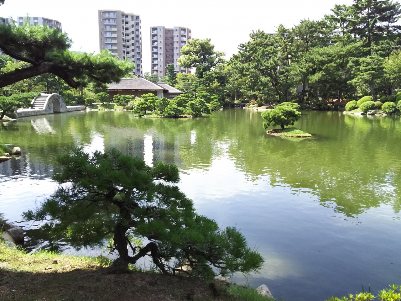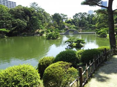 広島県立美術館で絵画を鑑賞したあと、美術館の専用出入口から縮景園へ入ることができます。縮景園は広島藩初代藩主が別邸の庭園として築成した大名庭園です。中国の「西湖」を模してつくられたらしい。園の中央の池には大小の島が浮かび、橋や茶室を回遊しながら楽しむことができます。いつも右回りに園内を回っています。2月末に訪れたときは沢山の梅の花が咲いていました。