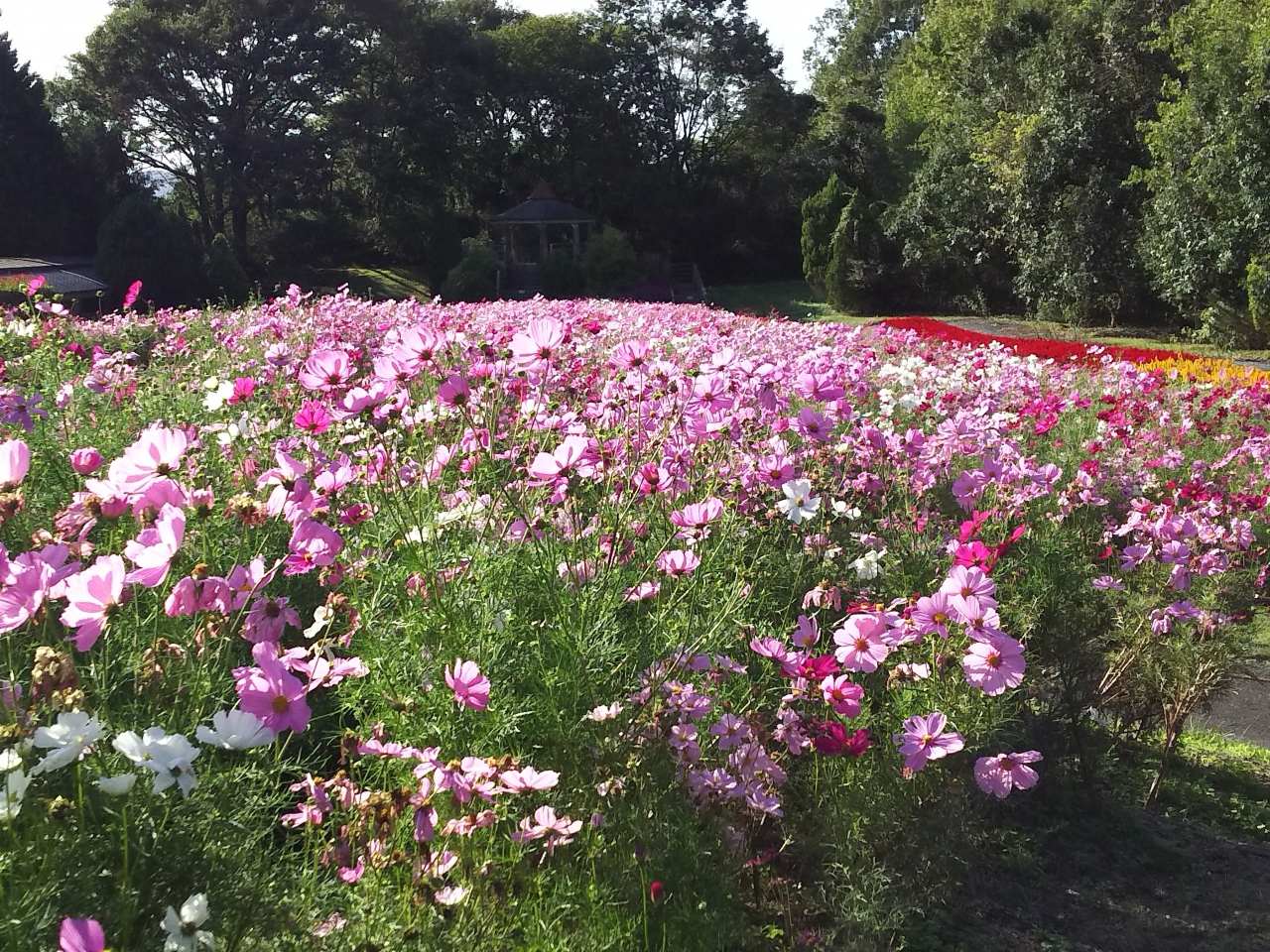 広大な公園で入口は2つありますが、国道183号線の直ぐ南にある北出口に車を停めて公園に入りました。いくつかのエリアに分かれており、徒歩で回るにはあまりに広すぎるので入口で電動アシスト自転車をレンタルして、右回りに公園を一周しました。途中、無料体験コーナーではわら細工を楽しんだりして過ごしましたが、ちょうどコスモスの季節だったので、「花の広場」は一面のコスモスの花で、とても綺麗でした。2時間あまりの滞在だったので、次回はもう少し時間をとって楽しみたいと思います。
