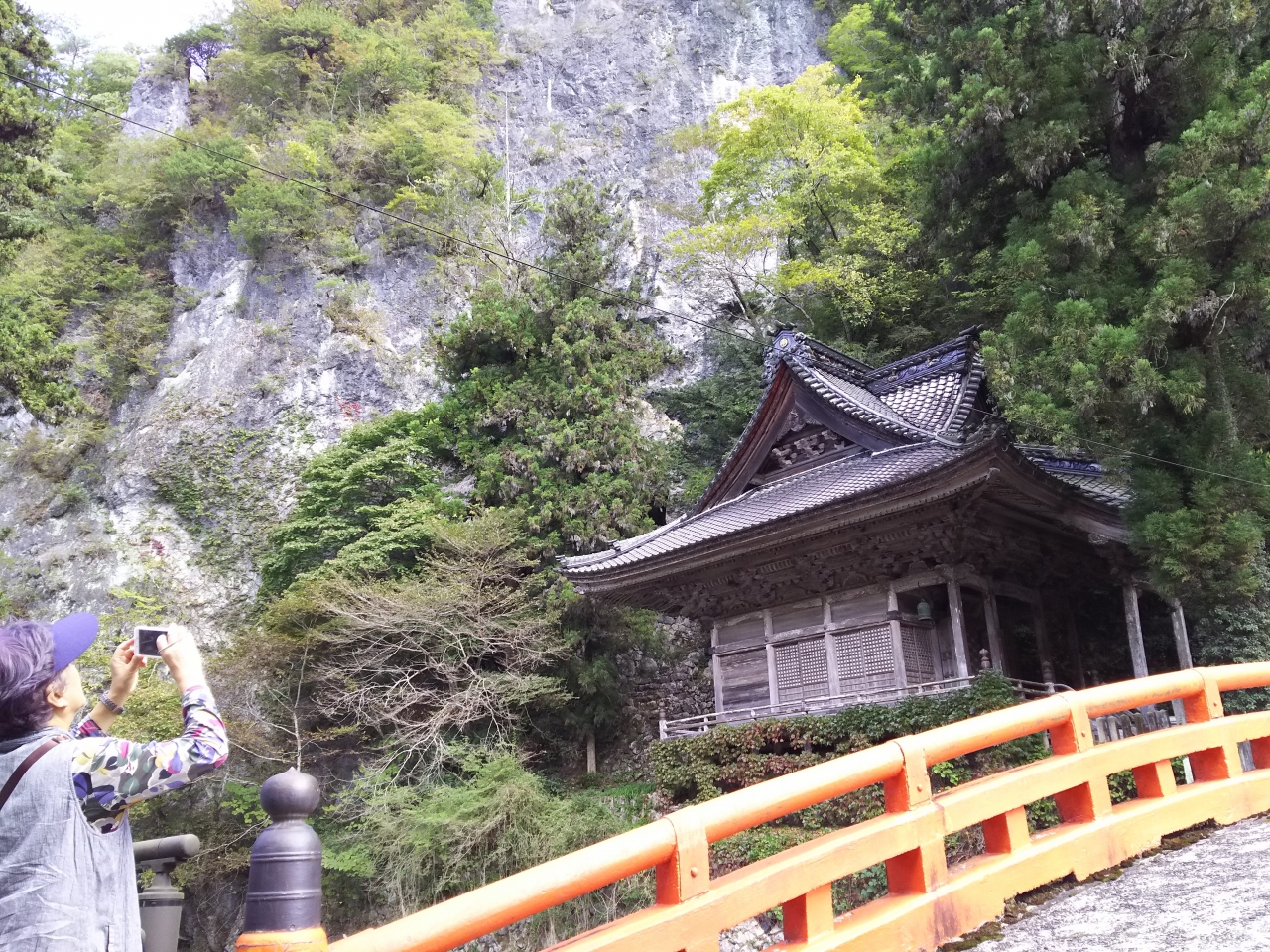 帝釈峡観光と言えば、下帝釈の神龍湖の遊覧、その上流の流水によってできた雄橋や鍾乳洞の白雲洞が定番ですが、この度は上帝釈の最上流に車を停めてその付近を歩きました。石灰岩の断崖の下部は流水によって削られ、その崖の下にある「賽の河原」は小さな洞窟ですが、薄暗い中に小石がつまれ独特の雰囲気で、思わず手をあわせました。その近くにある永明寺のお堂は断崖に囲まれいて危険のであるため、直接お参りすることはできませんが、橋を渡ってそのそばまで行くことができました。