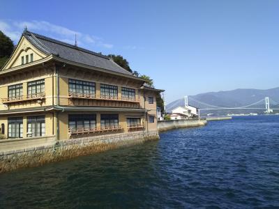 呉方面から車で安芸灘大橋をわたり、数分で三ノ瀬に到着します。この三ノ瀬の町並みの南に、満州土木建築業協会理事長を勤めた榊谷仙次郎という人が建てた、国登録有形文化財の別荘があります。木造2階建で,外壁をタイル張りで概観を見るだけでも一見の価値があります。地元の人の薦めで、この横の海辺に出ると、安芸灘大橋が見えました。大橋と青い海、別荘とのコントラストがとても綺麗です。安芸灘大橋が有料なのは、唯一残念です。