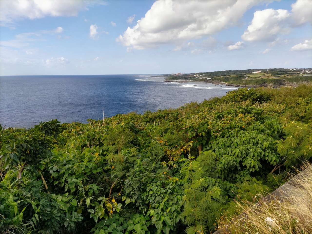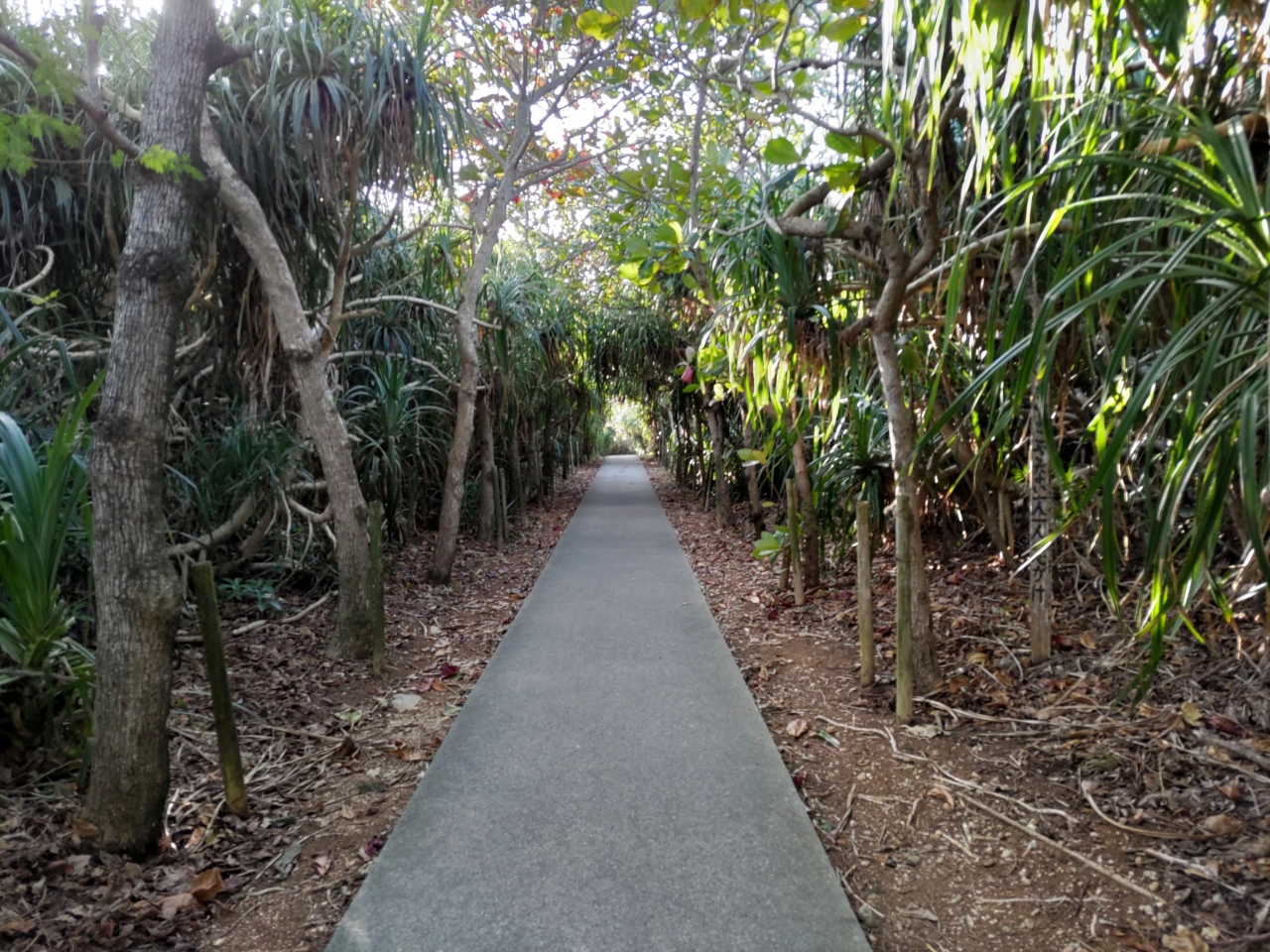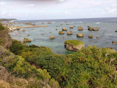 宮古空港から東に30㎞あまりレンタカーを走らせ、途中ドイツ村を経て約1時間で宮古島の東端、東平安名崎に到着する。駐車場に車をとめて10分ほど歩くと東平安名崎灯台があり、登って広い海を眺めることも可能だ(有料)。灯台付近からさらに遊歩道が続いており、紺碧の海を眺めながら、心地よい潮風をうけながら散策した。なお、駐車場にはトイレが整備されている。