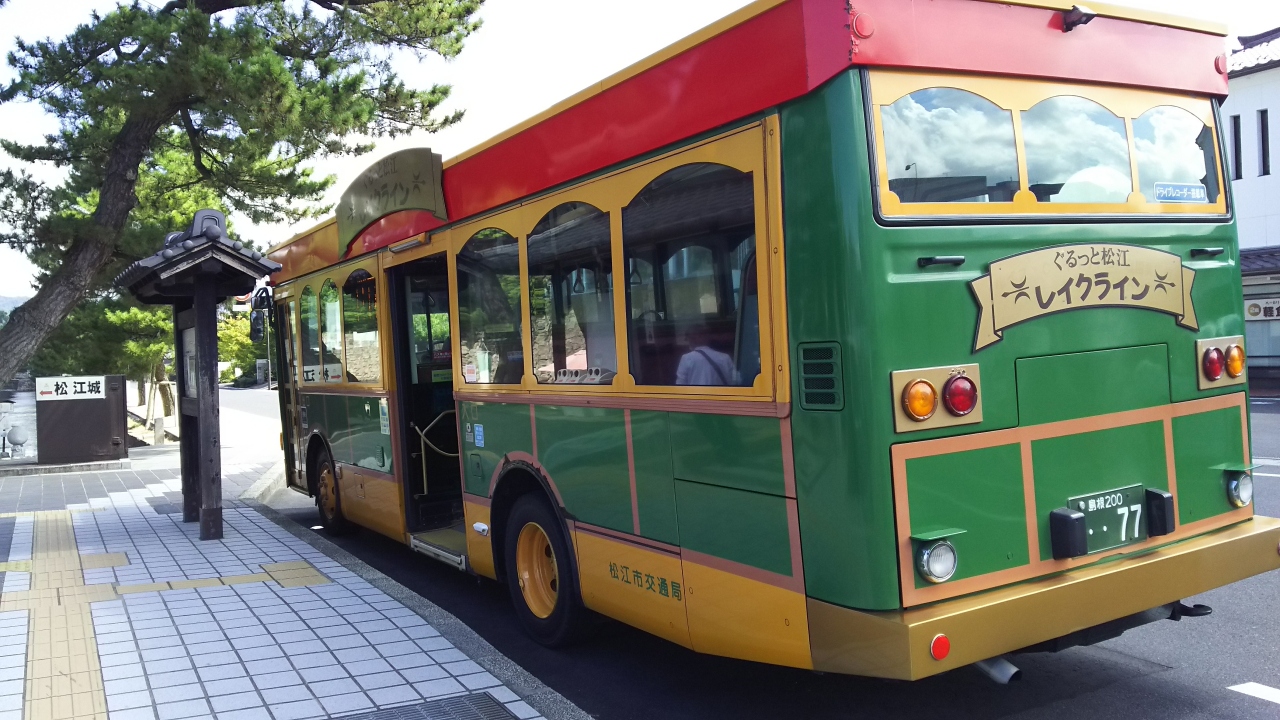 いつも自家用車で松江市内を動いているが、今回はレイクラインに乗って市内を一周した。1回乗車券が210円、1日乗車券が510円で、約50分で左回に一周して主だった観光スポットをめぐる。1時間に2~3便運行している。松江城の前で乗車して、小泉八雲記念館前、月照寺、宍道湖温泉駅、県立美術館、松江城、JR松江駅などを回って、松江城前で下車した。時にはバスの車窓から気軽に街並みを見て回るのも良い。夕刻には夕陽鑑賞コースもあるそうだ。