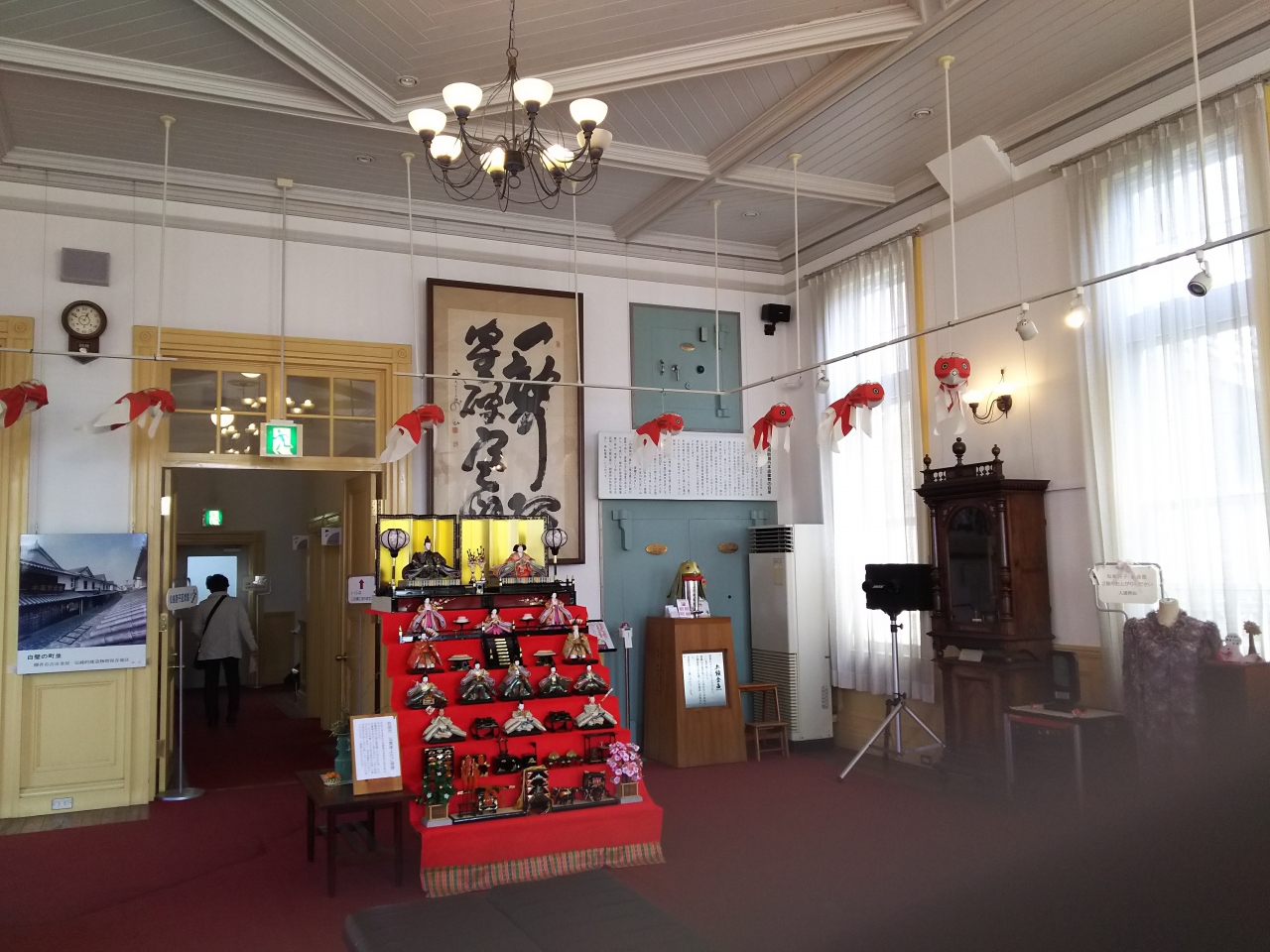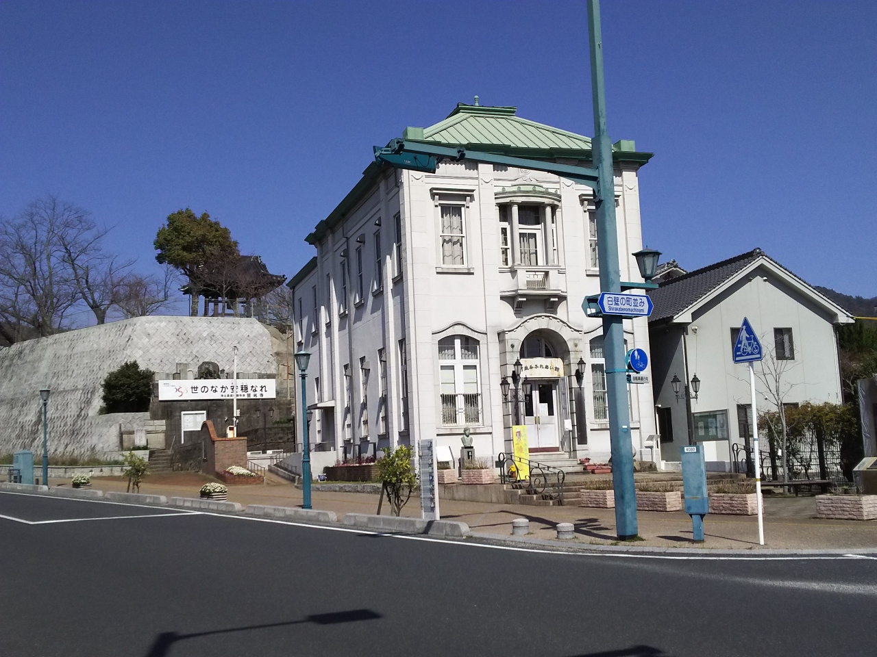 柳井市の町並み保存地区の中心よりやや東にある資料館で。北に数分歩いたところに無料駐車場がある。周防銀行本店として明治40年に建築された建物で、当時の銀行の姿を今日に伝えている。1階は、町並み資料館として町並み保存地区の町家模型や雛飾りの展示があった。2階は、柳井市出身の歌手、故松島詩子の記念館になっていて、彼女の曲が流れていた。若いころ広島で教師をしていたらしく、なぜか親しみを感じた。入場無料。