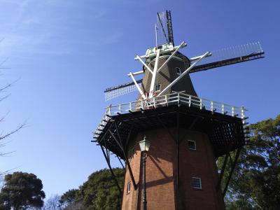 広島から山口への国道2号線周南市の西を走っていると、左側の小高い丘に風車が目につく。車で少し入ったところに駐車場があり、ここから公園内を歩いた。数人の地域の年配の方が懐かしい曲の演奏をしており、雰囲気満点。公園を歩いて登っていくと、樹林の中を道がつづき10数分で標高90mの山頂に着いた。頂上には大きなゆめ風車があり(内部の見学ができる)、周南市の中心市街地や臨海工場群を見渡すことができた。