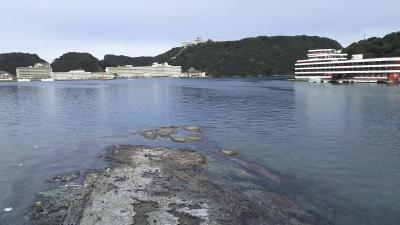 JR紀伊勝浦駅で電車を降り、15分ほど歩いてホテルに到着しました(送迎バスもあるようです)。部屋からは、波静かな勝浦湾と行き交う漁船が見えてとても綺麗でした。温泉はいくつかの湯ぶねに分かれていましたが、泉質は良くリラックスすることができました。バイキングのレストランはかなり広いですが、夕食時は混んでいました。アルコール飲み放題プランを追加し、1時間30分間食事を楽しみました。湯快リゾートは、もともと宿泊費は安価ですが、一人で宿泊しても料金が同じなのは助かります。勝浦駅とホテルの間の海岸沿いには、途中海産物を販売している店や足湯があります。