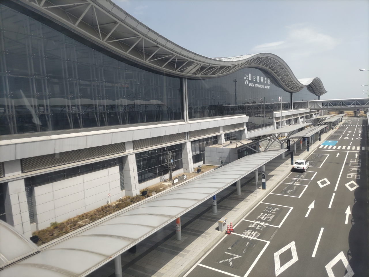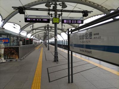 仙台空港は、2本の滑走路があり、国内線は仙台と国内9都市を結び、国際線はコロナ感染拡大前には世界6都市を結んでいる。広島からはIBX(ANAとのコードシェア便)が毎日3往復運航しており、この度は仙台空港11時30分着の便を利用した。東日本大震災の際、空港の滑走路に津波が押し寄せてくる様子をテレビで見た記憶があるが、今は完全復興している。ターミナルビルの1階は到着ロビーで、カフェやコンビニがあり、2階は出発ロビーと鉄道駅への連絡通路、3階はレストラン街とラウンジ、エレベータを利用して展望デッキに上がると、航空機の発着や眺望を楽しむことができる。