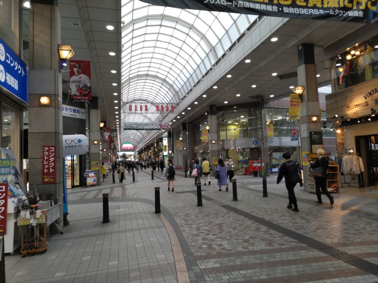 JR仙台駅西口の駅前通りを西に渡ると、アーケード街のハビナ名掛丁、さらに西に歩き愛宕上杉通りを渡るとクリスロードが続いている。クリスロードの天井は自然光を透過する明るい商店街で、呉服や時計・宝飾や装飾を扱う高級店やレストランなどが並び、歩くだけでも楽しい。商店街の中ほどには、開運と商売繁盛の「三瀧山不動院」がある。商店街に近いビジネスホテルに泊まり、1泊目の夕食は商店街に面したビルの地下にある居酒屋で、2泊目はファミレスでハイボールを飲みながらひと時を過ごした。