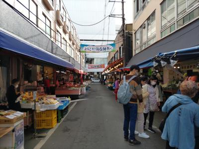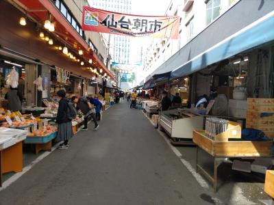 JR仙台駅西口から、西に歩いて5分あまりで朝市に到着する。高知の日曜市のような仮設テントが並んだ市ではなく、札幌二条市場のようにビルの横や内部に多くの店が並んだ常設市場である。朝9時頃から店が開き、夕方まで営業している店も多い。新鮮な地元宮城の生鮮食料品の店が中心で、食事もできるところもある。朝10時頃に訪れたが、元気な掛け声が各店から聞こえ、まさに朝市らしい雰囲気だった。