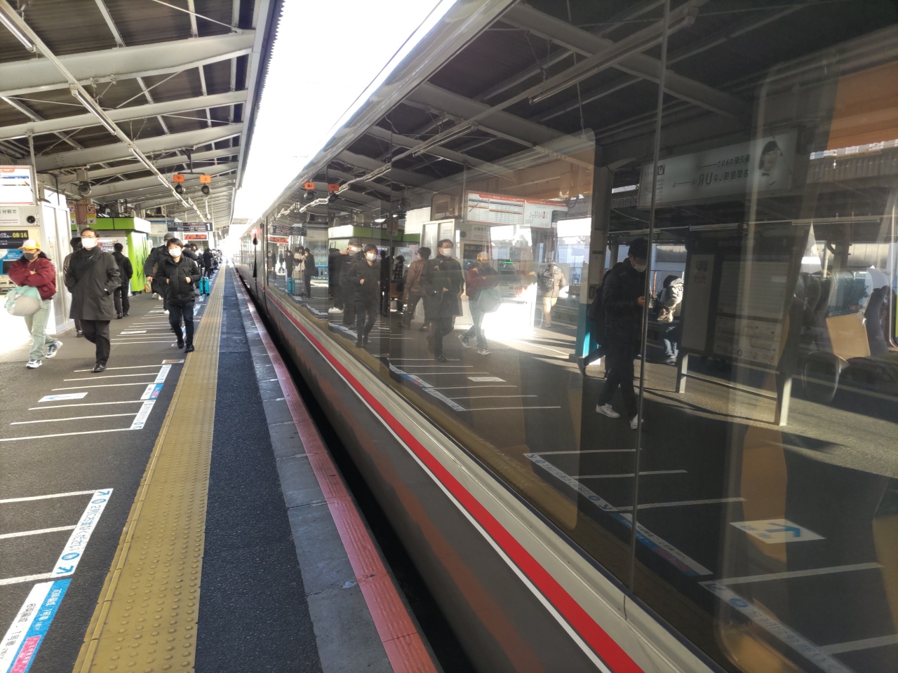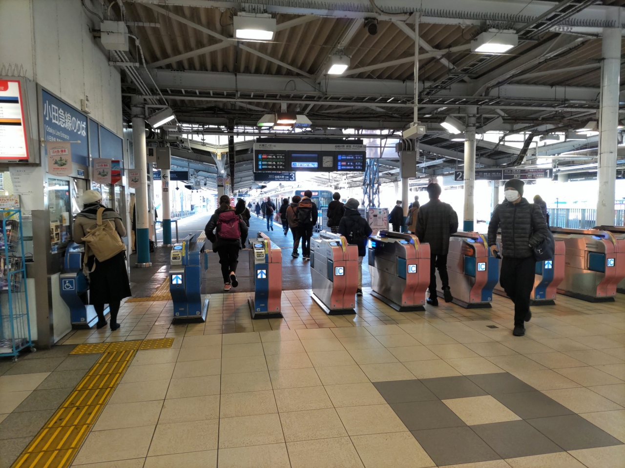 藤沢駅北口のホテルに宿泊した翌日、小田急江ノ島線を利用して片瀬江ノ島まで電車に乗った。江ノ島電鉄を利用する方法もあるが、小田急の乗場の方が江ノ電よりもわずかに近く(料金も若干安い)、片瀬江ノ島から江島大橋までの距離も江ノ電江島駅よりも少し短いので、小田急を利用した。藤沢・片瀬江ノ島間は、約12分毎に電車が発着し、所要時間は6~7分である。なお、特急「江ノ島」は例え短時間でも特急券が必要なので注意。