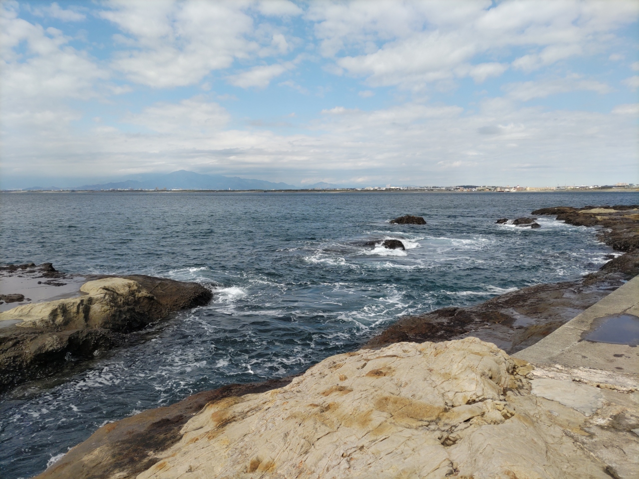 - 江の島の西端。江島神社経由で徒歩か、遊覧船。
