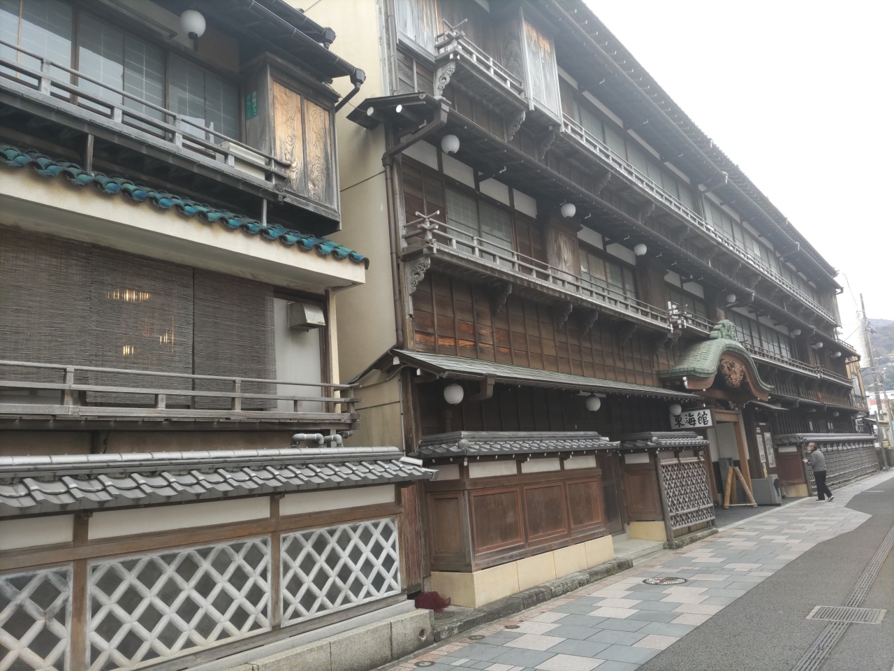 伊東園ホテル松川館から南に100mほど歩くと、伊東園ホテル別館がある。ロビーはあまり広くはないが多くの客で賑わっていた。南北約200mの範囲内に伊東園ホテル3館が並んでいるので、湯めぐりをするには都合がよい。3館のいずれに宿泊しても、無料で3館の湯めぐりができる。別館の大浴場はフロントの右をすすんだところにある。浴室は比較的広く、湯量も豊富な感じがした。泉質も良い。