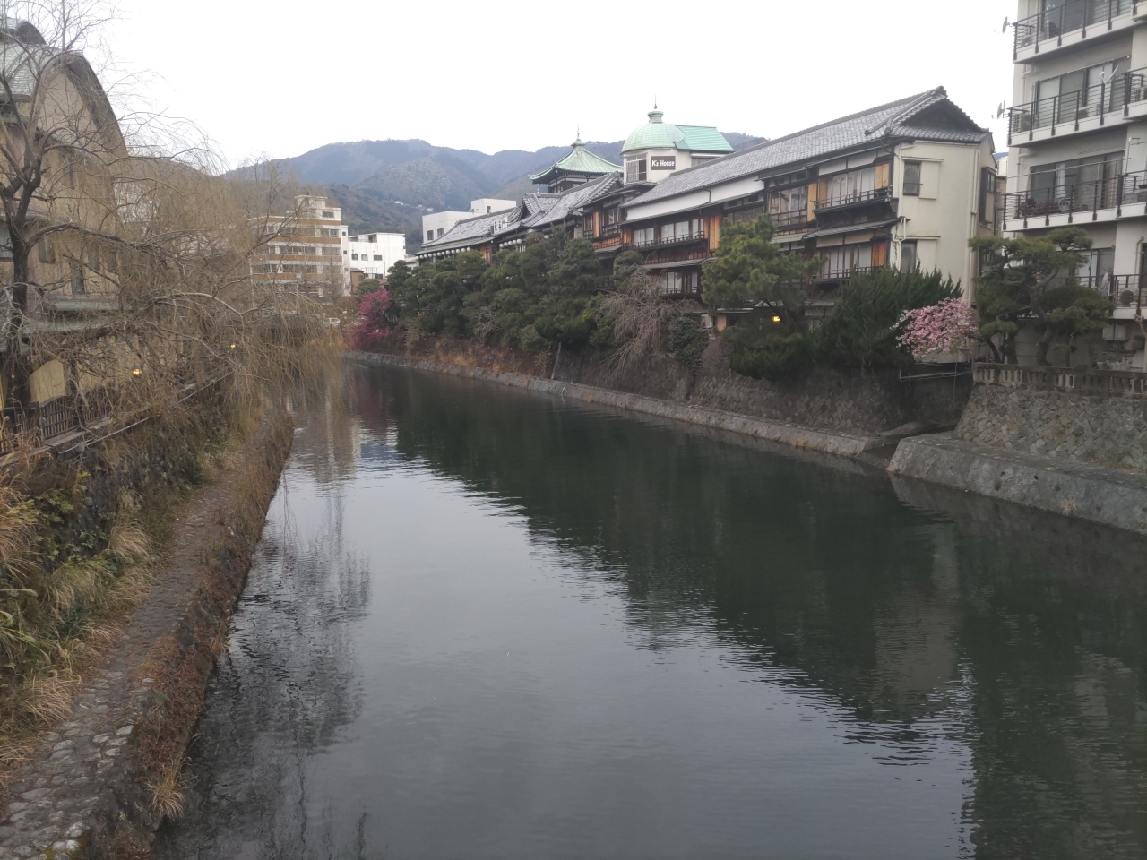 伊東駅から、南東に湯の花通り・キネマ通りを歩いて約10分、伊東園ホテルに到着する。伊東駅からホテルまでマイクロバスが運行しているので、時間があえば利用すればよい。ホテルの裏側には松川が流れているので、朝食前か夕刻に散歩して温泉町の風情を味わうのも良い。全国旅行支援の関係か、チェックインにかなりの時間を要した。夕食・朝食バイキング、アルコール付きはかなり割安だ。夕食は2部制の入替で、終了時間にレストランから出るよう繰り返して促すのはやや気になった。温泉の泉質は良いと思う。近くに伊東園松川館と伊東園別館があり、フロントに申し出れば、無料で湯めぐりができる。