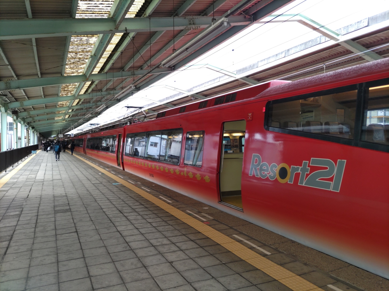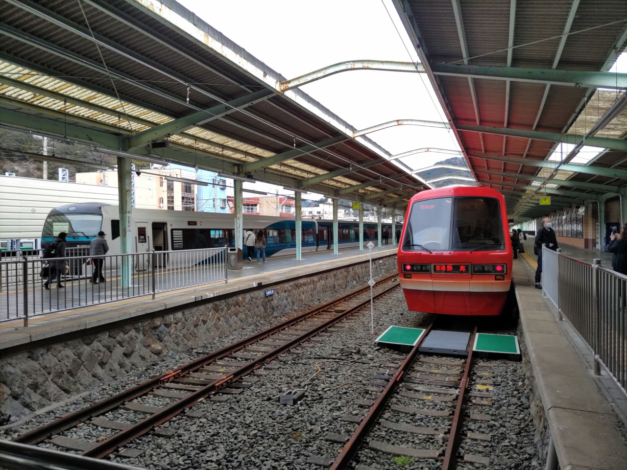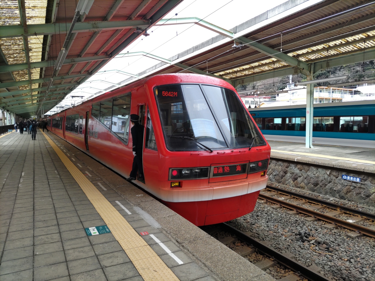 伊豆熱川駅に停車中は、車窓下に100℃の熱湯が自噴・沸騰している大きな湯桶が見えた。- 旅行時期